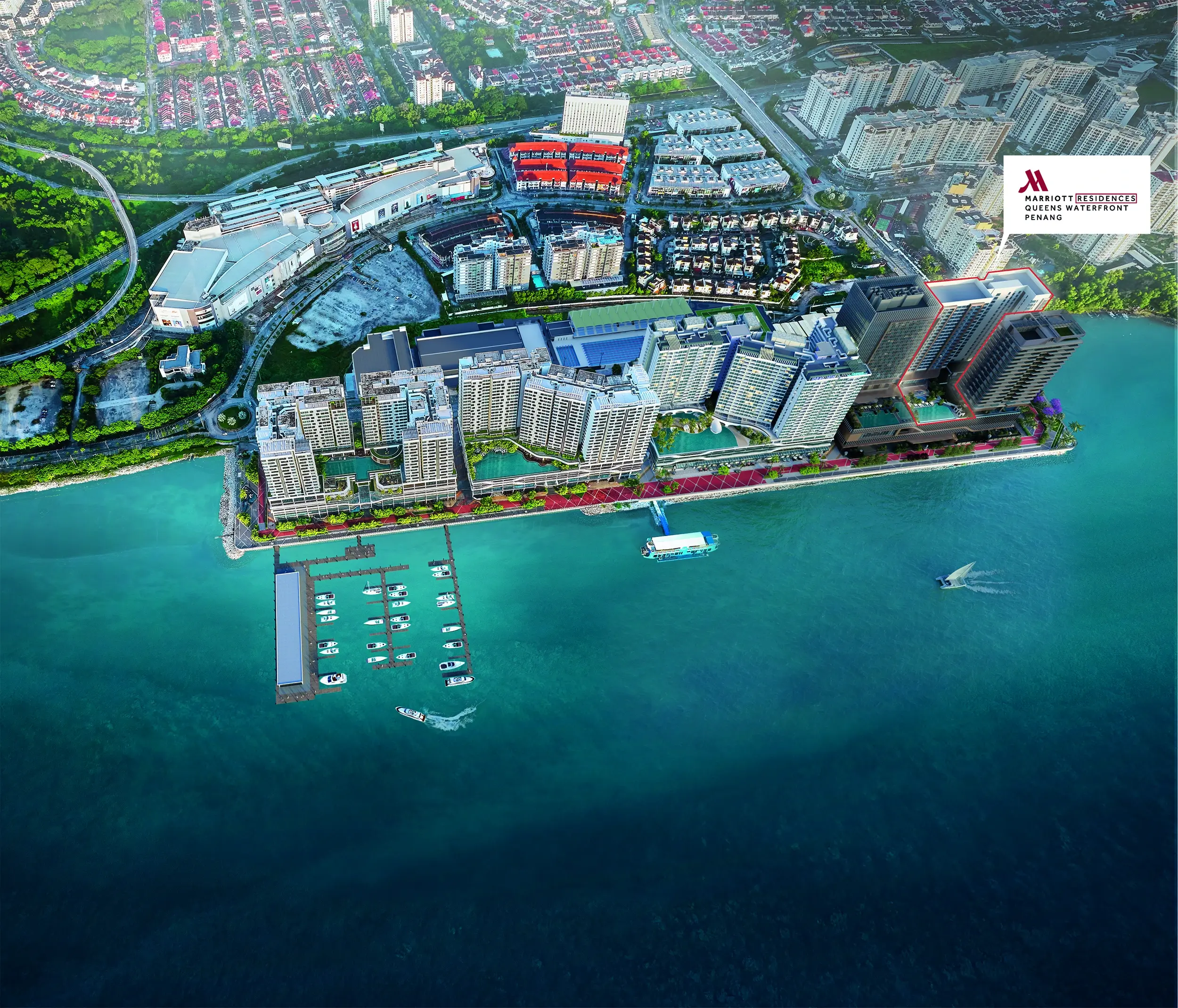 At Marriott Residences Queens Waterfront, Penang, the allure of coastal grandeur finds its perfect home. Beside the shores of the Penang Bridge, The Residences offer a life of quiet sophistication, with unparalleled comfort, service, and amenities — all set against breathtaking views. Your seaside oasis awaits within the bustling Penang Island.